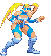 Rainbow Mika, the powerful wrestler from Street Fighter Alpha 3, stands in her iconic blue and white costume, ready for action.