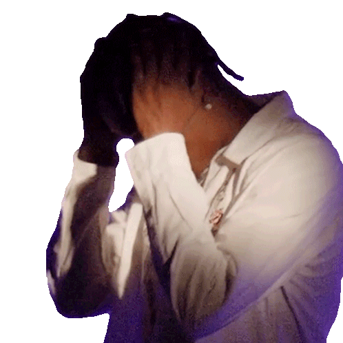 Tonio Hall, a man with dreadlocks, covers his face with his hands, showing deep stress and frustration.