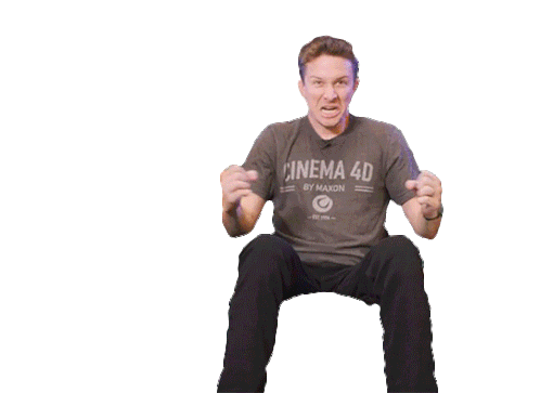A man from Corridor Crew, wearing a Cinema 4D shirt, clenches his fists and yells with intense strength and aggression.