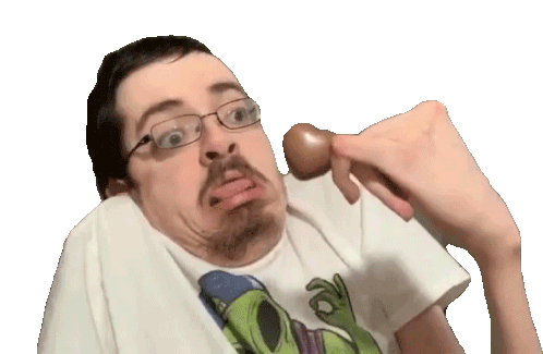Ricky Berwick makes a funny, strained face with his tongue out, struggling to lick a piece of chocolate.