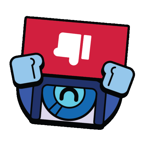 a cartoon character is holding a red sign that says i