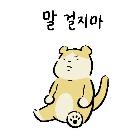 A grumpy, sulky cartoon bear sits with a stern expression, conveying 'Don't talk to me' in Korean text above.