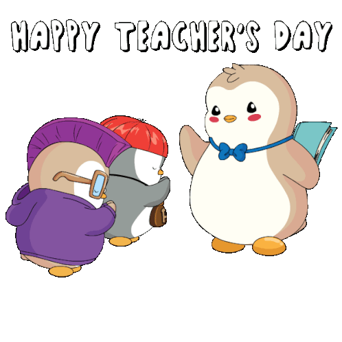Adorable penguin students greet their teacher on Happy Teacher's Day, a heartwarming scene of appreciation.