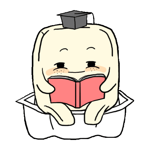 A cute character wearing a graduation cap is diligently studying a book, looking focused and happy.