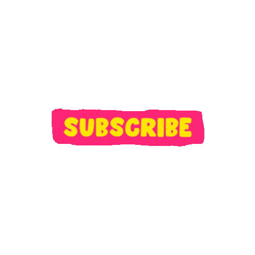 Animated pink doodle subscribe button with yellow text and sparkling effects, great for social media.