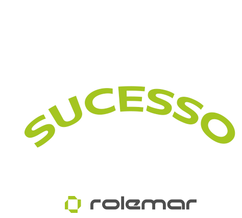 Green arched text 'SUCESSO' (Success) with two bright stars and the 'rolemar' logo on a white background.