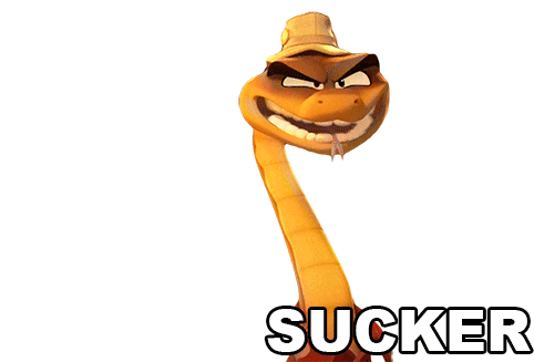 Mr. Snake from The Bad Guys looks surprised with "SUCKER" text, implying a trick or prank.