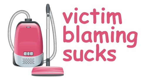 a pink vacuum cleaner with the words " victim blaming sucks " below it