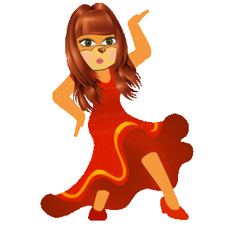 Sugr Sugr Sugr character in a red dress performing a funny, energetic dance.