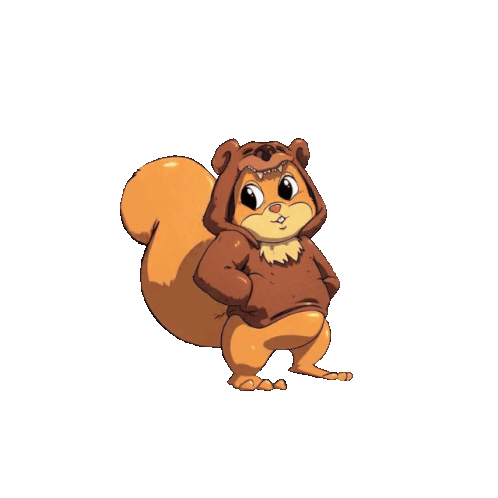 A cute Sugr cartoon squirrel, dressed in a bear costume, performs a happy and energetic hip hop dance.