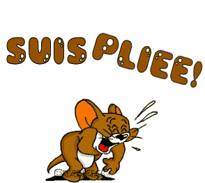 Tom and Jerry's hilarious reaction, with Jerry laughing so hard he's 'Suis Pliée Mdr'.