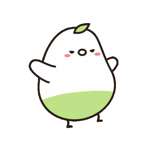 A cute pear-shaped character with a leaf on its head snorts with a grumpy, sulky expression.