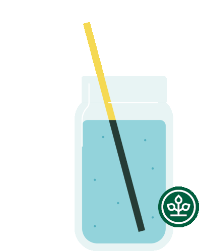 Animated sticker showing a glass of water with a straw, encouraging to 'Stay Hydrated' during summer.
