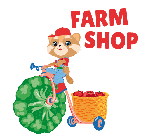 Summer and Todd visit the Farm Shop! Todd rides a unique bicycle with a broccoli wheel, carrying a basket of fresh apples and vegetables.