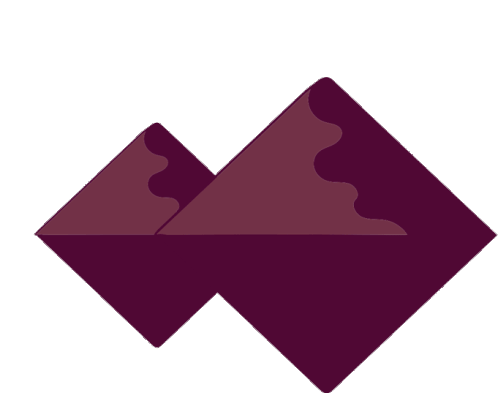 A minimalist, geometric sticker featuring dark mountains silhouetted against a vibrant red sun, evoking a serene sunset or sunrise.