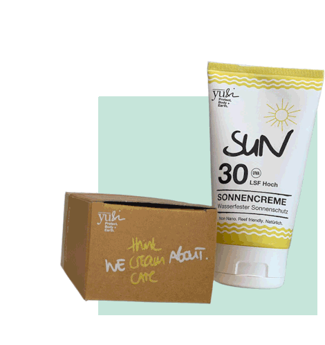 A tube of sunscreen with SPF sits next to a cardboard box, promoting skin care and sun protection. Ideal for summer.