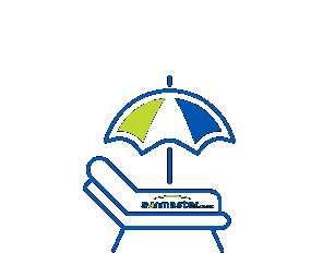 An animated sticker featuring a blue outline of a sunbed and beach umbrella, perfect for relaxation themes.