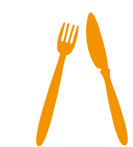 An orange fork and knife, representing cutlery, ready for a meal. Perfect for food-related messages.