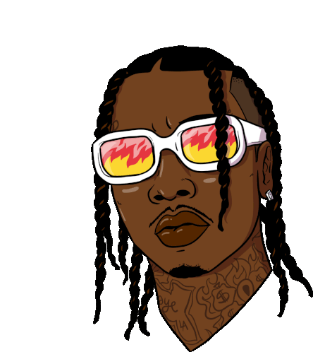 A cool animated sticker featuring a person with braids and stylish sunglasses reflecting vibrant flames, exuding a confident 'Like A Boss' vibe.