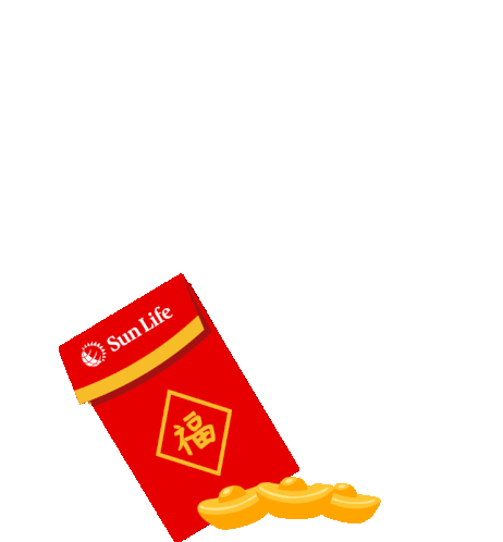 Sun Life Malaysia red packets with the character '福' and gold ingots, symbolizing fortune and prosperity for Chinese New Year.