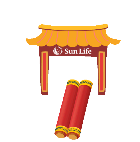 Sun Life sticker for Chinese New Year featuring two cute rabbits holding gold ingots and displaying festive greetings.