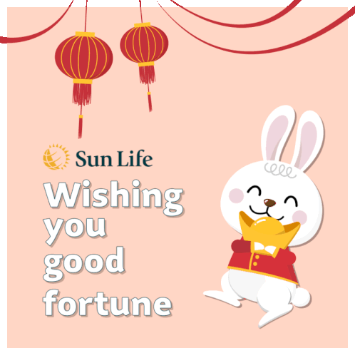 Sun Life Malaysia sticker featuring a cheerful rabbit holding a golden yuanbao, wishing good fortune for Chinese New Year.
