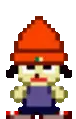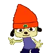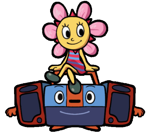 Sunny Funny, the flower character from Parappa The Rapper, sitting cheerfully on a colorful boombox.