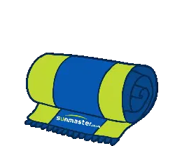 An animated sticker of a blue and green Sunmaster sunscreen tube with an SPF label and sun logo.