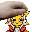 Fortnite's adorable Sunspot character gets a gentle pet on the head, reacting with a cute, happy animation.