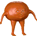 An animated sticker featuring a round, orange, fruit-like creature with human-like arms, legs, and a face, standing upright.