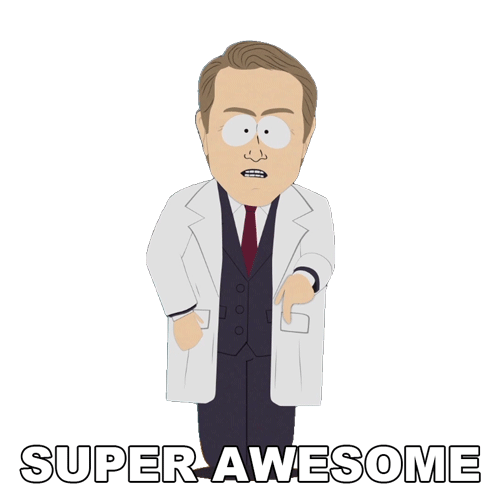 Dr. Mephesto from South Park points down, then looks surprised, with 'SUPER AWESOME' text below.