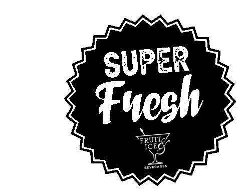 A stylish black and white logo featuring 'SUPER Fresh' text and a cocktail glass icon for Fruit Ice Beverages.