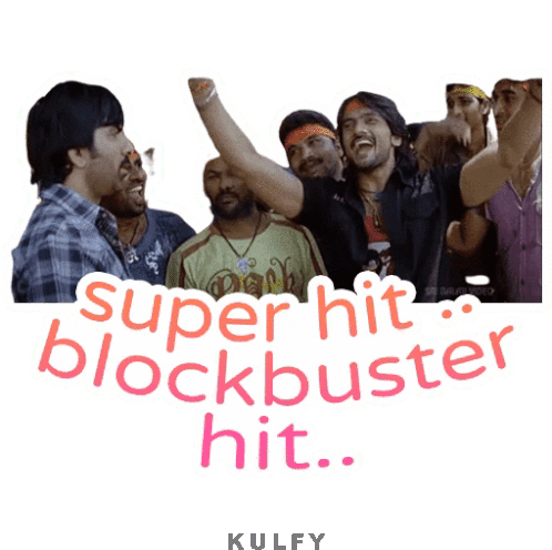 a group of men standing next to each other with the words " super hit blockbuster hit "