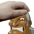 Animated sticker of Super Macho Man from Punch-Out!! getting a humorous head pat, making a funny, grimacing face.