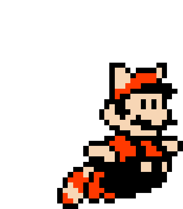 Super Mario as Tanooki Mario running in pixel art style, perfect for Nintendo Switch fans.