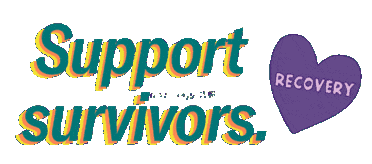 A sticker promoting support for domestic violence survivors, featuring 'Support Survivors' text and a purple heart.