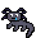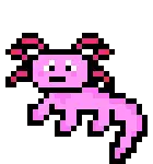 A cute pixel art axolotl with large eyes and red gills drinks or spits out a pink liquid. Simple, charming animation.