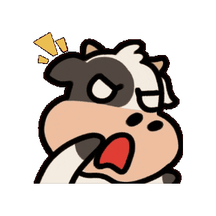 A cartoon cow from Indonesia with a shocked and surprised expression, hand to face, and exclamation marks.
