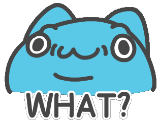 A cute blue blob-like cartoon character reacts with a surprised and confused expression, exclaiming 'WHAT?' below it.