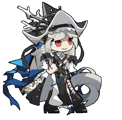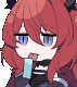 Surtr, the Arknights character, is depicted in pixel art, playfully licking a cell phone screen with a mischievous expression.