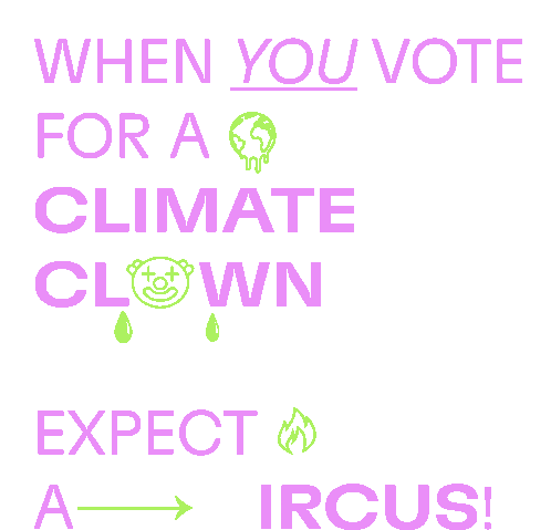 Animated text "When You Vote For A Climate Clown Expect A Circus!" with a "Stop Walker" sign, targeting climate deniers like Herschel Walker.