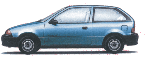 A light blue Suzuki Geo Metro Swift hatchback car, seen from the side, featuring the 'SWIFT' branding.
