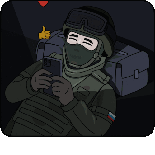 a cartoon of a soldier looking at his phone