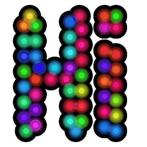 A vibrant, animated 'Hi' greeting formed by colorful, glowing, and pulsating dots, creating a psychedelic effect.