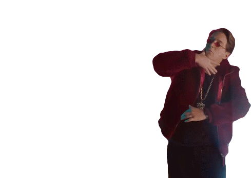 Beck Bennett strikes a cool 'swag' or 'gangsta' pose, looking confident in a red jacket and sunglasses.