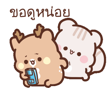 Happydeer, a cute deer, curiously peeks at a friend's phone, asking "Let me see!" with a playful expression.