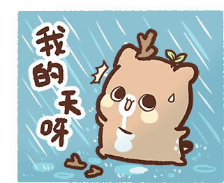 A cute Sweethouse deer character is shown crying in the rain, expressing distress with the Chinese phrase 'Oh my god!'