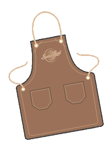 A brown apron featuring the 'Sweetland Café' logo, complete with two front pockets and detailed stitching.