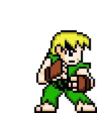Pixel art animation of Kenmasters from Street Fighter in a dynamic fighting stance, ready for action.