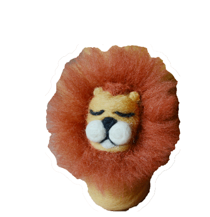 A charming Sweety Vellon handmade felt lion head with a fluffy mane, appearing sweet and sleepy.